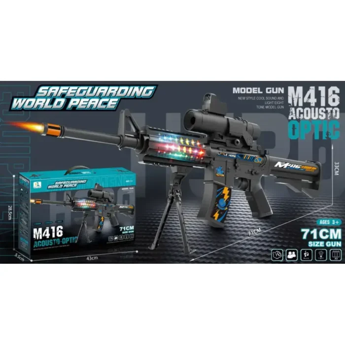 - Realistic Design: The M416 Assault Rifle Toy is crafted with intricate details that resemble the actual M416 rifle. Its sleek design and vibrant colours make it appealing to children, encouraging active play and creativity.
