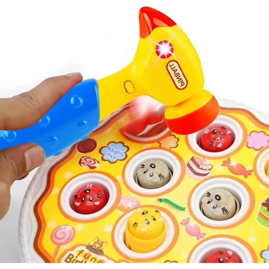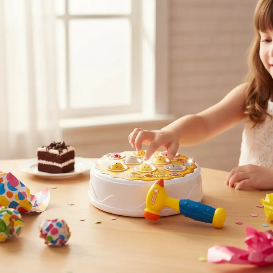 This game is not just fun; it helps children develop key skills naturally. As they whack the moles with soft, child-safe foam hammers, they improve hand-eye coordination, reaction speed, and focus—skills that support learning and physical development. The game’s built-in electronic scoreboard boosts motivation, prompting kids to try for new high scores again and again. The exciting sounds, flashing lights, and birthday-cake design make every round feel festive and special, sparking joyful memories at parties or quiet playtime.